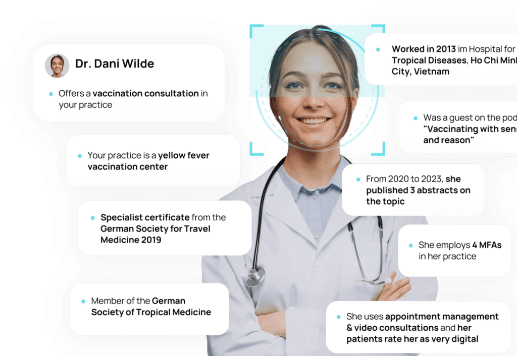 With our Vertical Search Health, we use AI to find the right HCPs for your indication – precisely and comprehensibly. Gain valuable insights for your target group for a hyper-personalised approach.